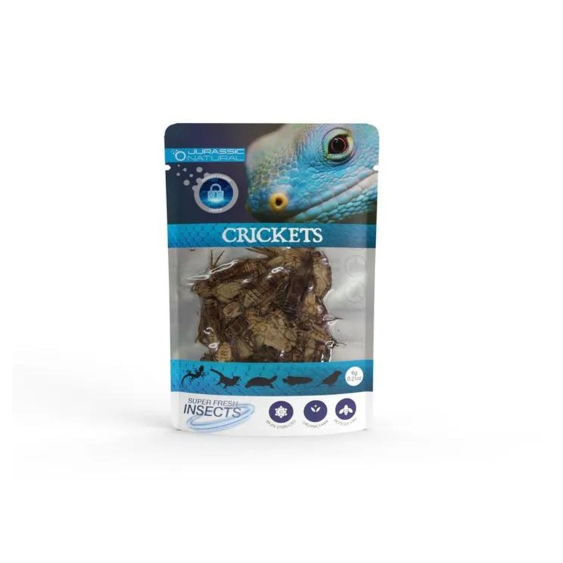 Jurassic Natural Cricket 6g Single PackSuper Fresh Insects have pioneered a new way to feed reptiles, amphibians, fish, small animals, birds, poultry & exotics. Organically farmed, Super Fresh Insects have been processed in an FDA certified facility where