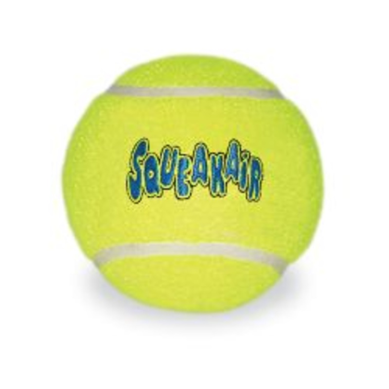 The KONG AirDog Squeakair Ball combines two classic dog toys the tennis ball and the squeaker toy to create the perfect fetch toy. Our durable, high-quality Squeakair Ball will not wear down your dogs teeth. Its made with a special non-abrasive felt, compared to the abrasive material on normal tennis balls.