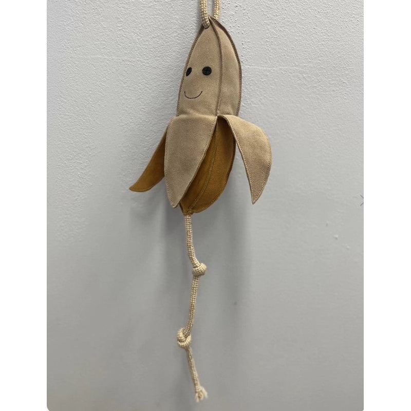 Introducing theBanana Barn a natural, large equine toy crafted with care to enrich your horses stable or barn experience. Made from durable suede and soft cotton, this engaging toy is designed to capture your horses curiosity and provide hours of entertainment. Perfect for horses who enjoy stable enrichment, the Banana Barn is crafted to add a touch of rustic charm to any barn setting. Safe, sturdy, and natural, its the ideal addition to your equine friends environment.