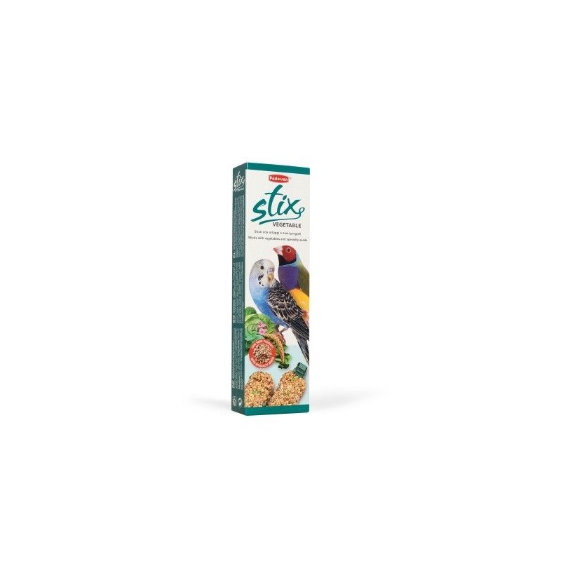 Complementary feed for budgies and small exotic birds. Crumbly baked sticks with vegetables and quality seeds, to be given as a supplement to the birds normal diet.How to use?Leave the stick fixed inside the cage for the bird to eat at will.