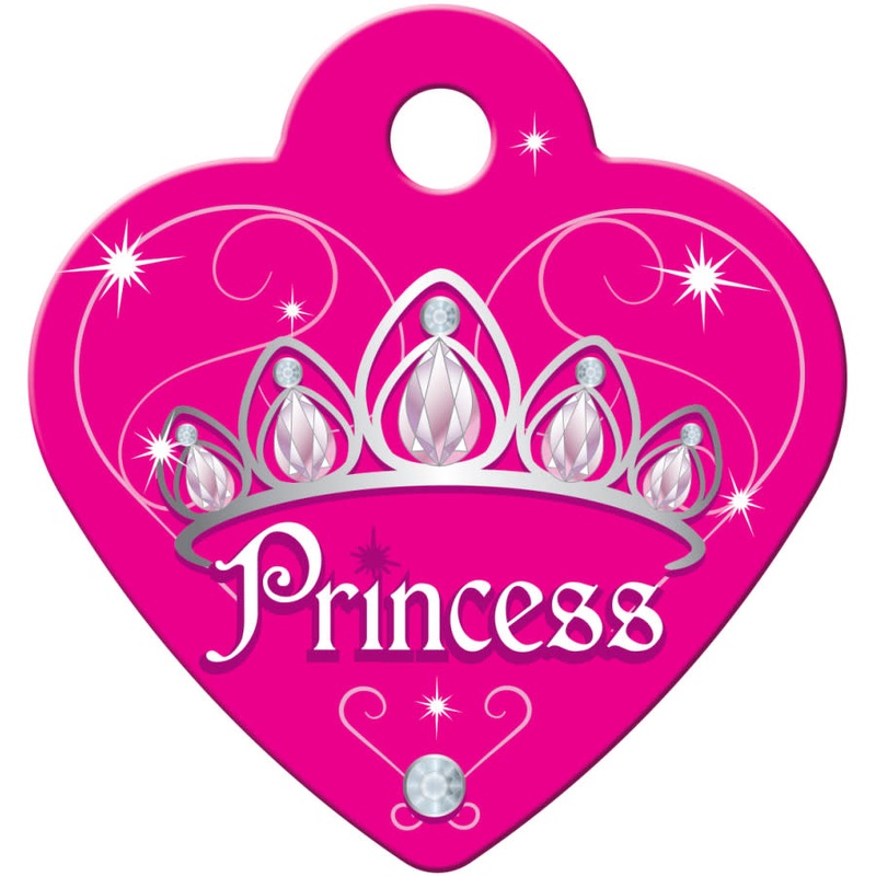 For a tag fit for a princess, try our Crown Princess Heart Pet ID Tag. With subtle glitter accents the crown sparkles as befits your four legged royalty. With up to 3 lines of text, there is plenty of room for your pet's important information to help ensur