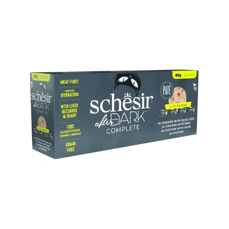 Schesir After Dark In Pate’ Variety Pack For Cat 960g (80g x12 Cans) – 4 Flavors ( 3 Cans Each Flavor)