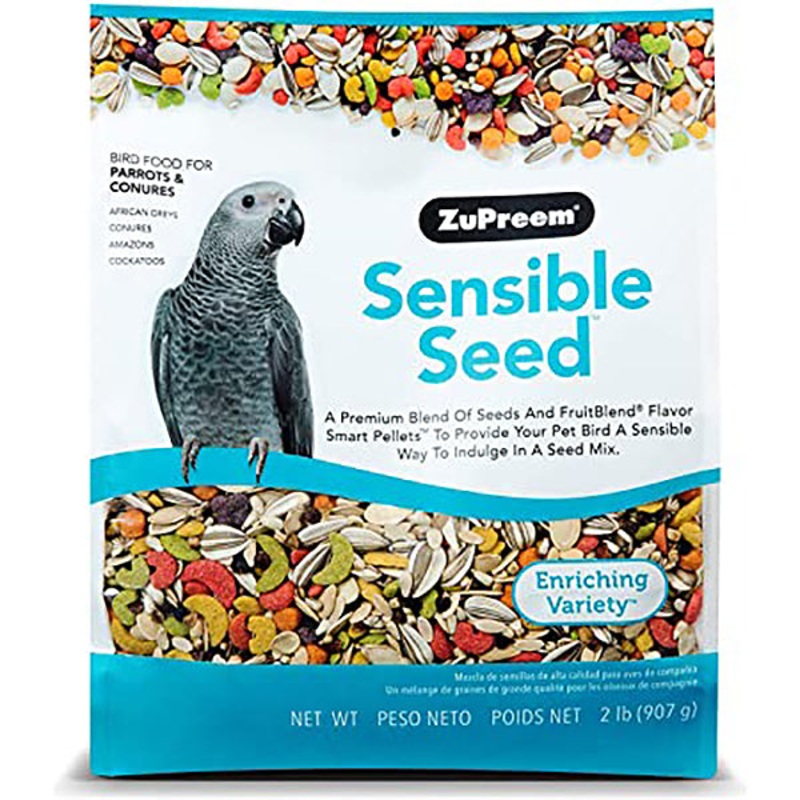 Sensible Seed Bird Food for Parrots and Conures is a premium blend of seeds and FruitBlend Flavor Smart Pellets to provide your bird a sensible way to indulge in a seed mix. With only 10% sunflower seeds, this blend includes a delicious mix of right-sized