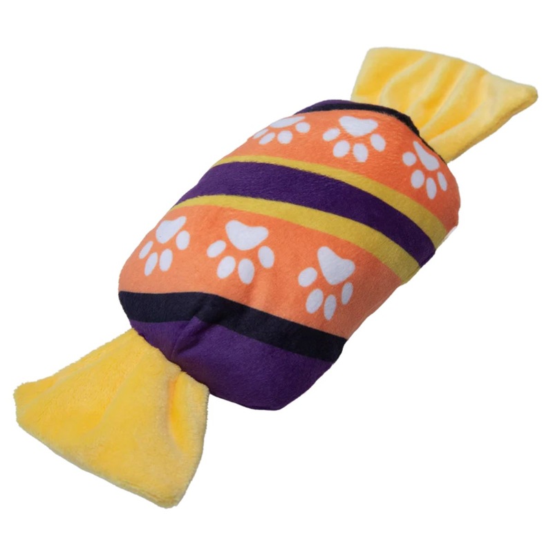 Trick or Treat! This toy is sure to be your dog’s favorite Halloween delight. Complete with crinkle and squeak features, it’s crafted from recycled water bottles.