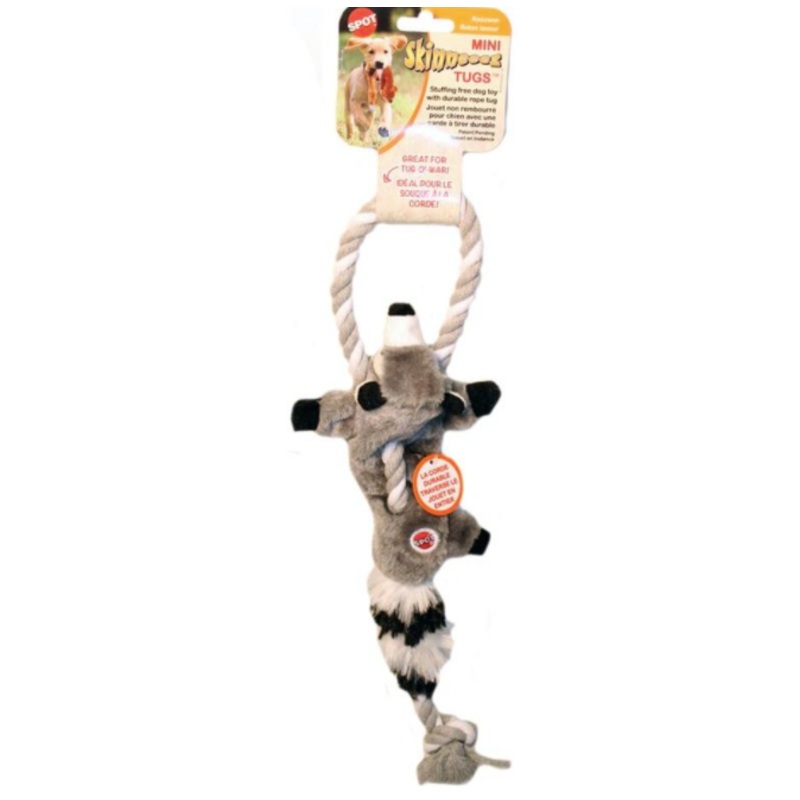SKINNEEEZ TUGSRACCOONSkinneeez Tugs have rope threaded through the entire body of hte toy giving them extra durability during those intense rounds of Tug-o'-war with your dog!Unique crinkle paper inside for crunchy fun!SPOT Skinneeez TugsDimensionsBFA Item