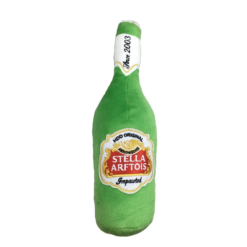 For the hipster in your life, it may not be craft beer but it's a Stella Arftois squeaky bottle toy! A soft plush toy with a fun squeaker inside for hours of fun!Measures 8" H