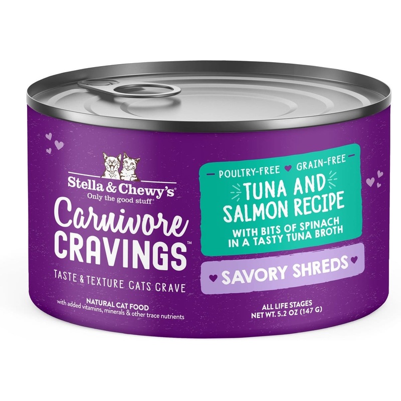 Stella & Chewy’s Carnivore Cravings Savory Shreds Tuna & Salmon Dinner in Broth Wet Cat Food 5.2 oz