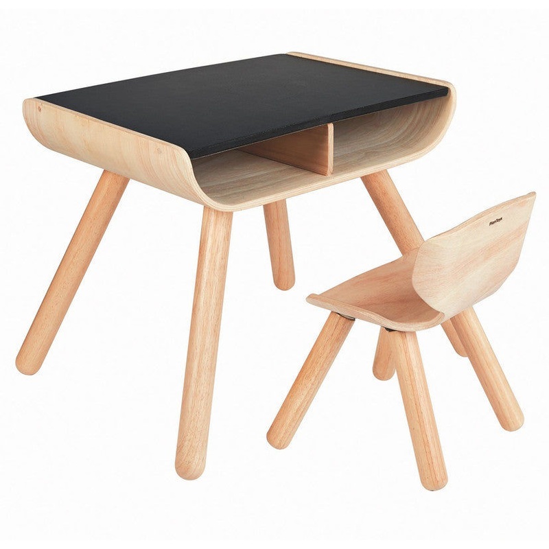 TABLE AND CHAIR - BLACK: With a sleek bent wood design, our multifunctional table is perfect for the active toddler. There are 2 compartments for storage, sturdy support and a desk top that toddlers can draw on with chalk as well. The chair also has a bent
