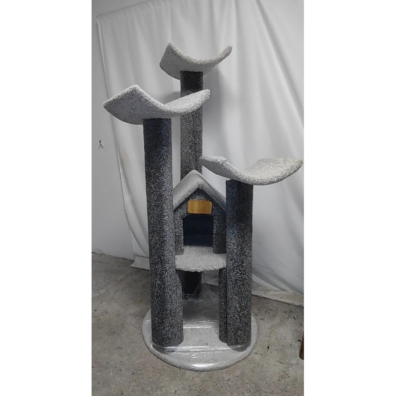 It has three posts and stands 5 foot 3 inches high. It is on a plywood and 2X4 Frame. Has a 29-inch circular baseCannot Guarantee fabric color in-store