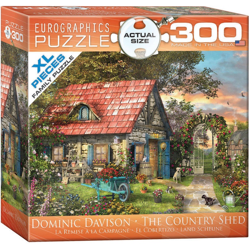 An attractive puzzle scene image of Cobblestone shed, gardening tools, flowers and wildlife. Artist Dominic Davison. This is a high quality 300 piece jigsaw puzzle from Eurographics. It features full glossy artwork and is manufactured from recycled cardboard. Over 500 designs are available within the range and they are suitable for all ages from children through to the elderly (large XL piece puzzles available). jigsaws are a great family activity and help to bring your family together and work as a team.