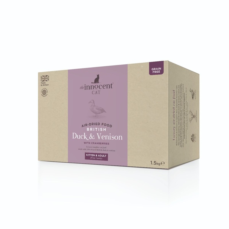 Introduction:Introducing The Innocent Cat Air-Dried Duck & Venison with Cranberry Kitten & Adult Dry Cat Food a premium, grain-free complete food specially formulated for cats and kittens aged 5 weeks and over. Made with high-quality British duck and venis