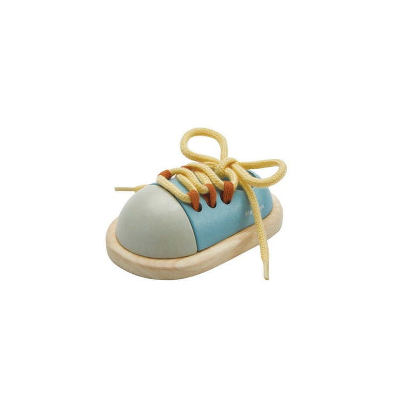 Learn how to tie your shoes! The laces on this wooden shoe can help little ones develop their hand-eye coordination and fine motor skills so they can tie their shoes on their own one day.Sustainability FeaturesSustainably made from rubberwood trees that no