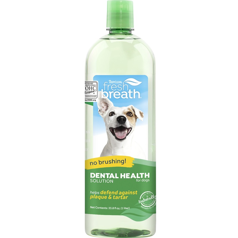 Cleaning your pets teeth is about more than just getting their pearly whites to sparkle its an important step in their overall health and wellness. With TropiClean Fresh Breath Dental Health Solution, dogs can benefit from daily plaque and tartar defense, simply by drinking from their water bowl. Easy-to-use Dental Health Solution gives your dog clean teeth and fresh breathno brushing required!