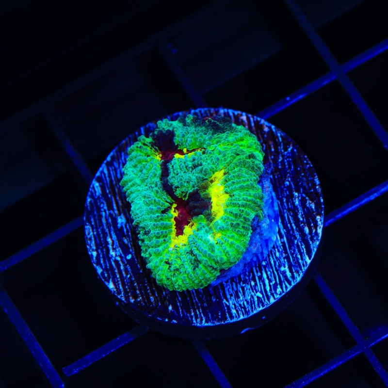 Introducing the stunning TSA Watergate Salad Favia Coral, a breathtaking addition to any marine aquarium. WYSIWYG what you see is what you get, ensuring you receive the exact piece shown in images. All frag plugs are sized between 3/4" - 1" unless stated o