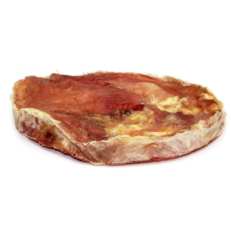 Instead of stretching out a beef bladder into a stick, we did something a little different and stretched out this beef bladder into a flat, round disc shape. This broad shape makes it ideal for dogs who tend to gulp large treats whole.