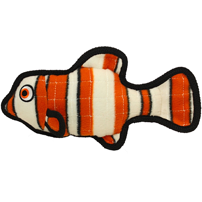 The Tuffy Ocean Creature Fish is a great tug and fetch toy for dogs of all sizes. This toy is made with multiple layers of material that are bonded and sewn together to make one "Tuff" Layer. Each toy is then stuffed with safe, non-toxic fiber and sewn wit