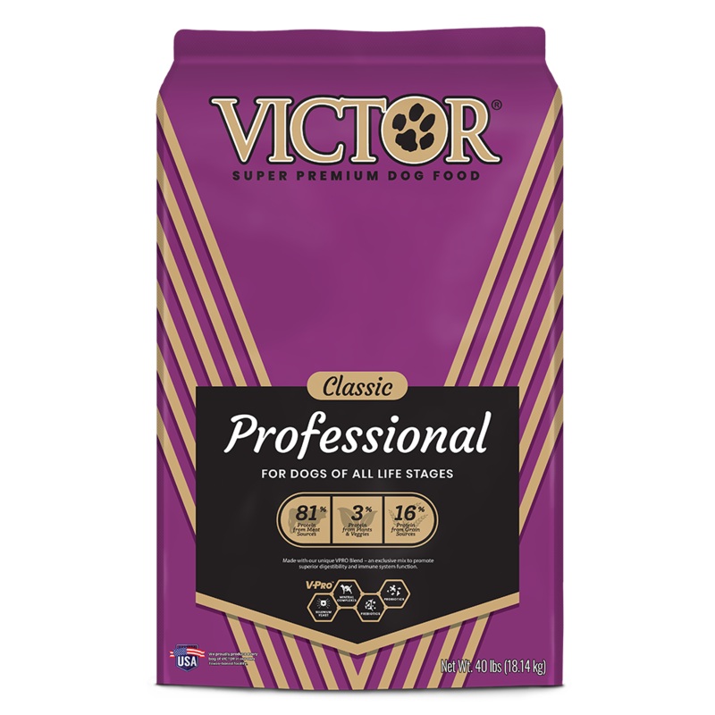 For years, VICTOR Professional formula has been used by professional dog breeders, kennels and owners of active sporting dogs. This nutrient-dense, multi-protein formula is an excellent choice for growing puppies, pregnant and lactating females, and high-p