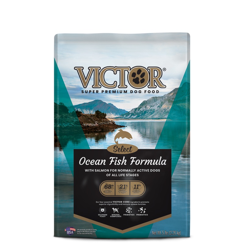 With premium-quality fish meal as the primary protein source, VICTOR Ocean Fish Formula contains significant levels of omega-3 fatty acids and other nutrients for dogs with normal activity levels. It is easy to alternate SELECT formulas to offer your dog multiple flavors throughout the year. This formula is appropriate for large and small dogs at all life stages.