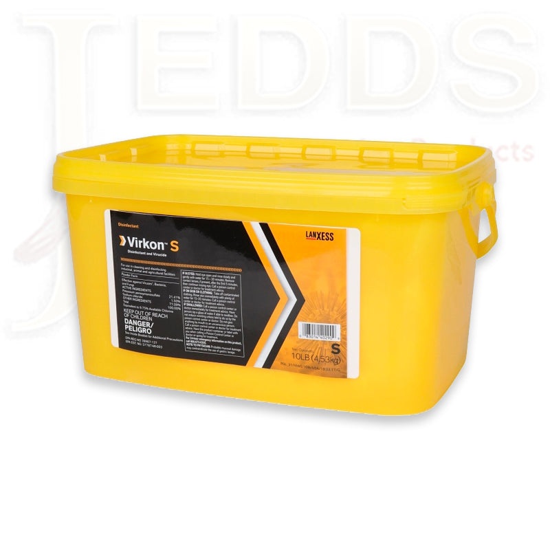 Notes: Solutions are stable for 7 days. Do not soak metal objects in Virkon S for long periods – 10 minutes is maximum necessary contact time. One gallon of solution is sufficient to treat 135 square feet.