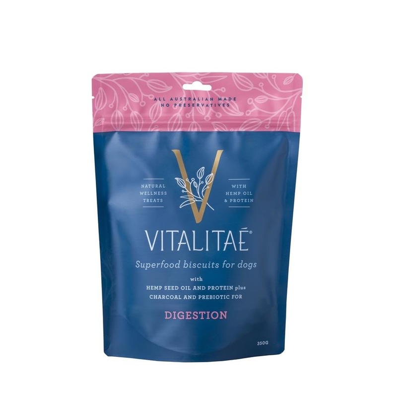 Vitalitae Digestion Biscuits are a tasty dog treat with added benefits that your dog will love. They are specifically designed to target gut health and digestion. These biscuits are made with added essential vitamins and minerals and contain no added colou