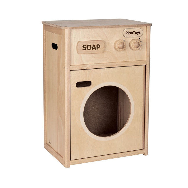 PRETEND PLAY: It's time to wash your clothes! Pretend to wash, dry and care for your clothing items with the PlanToys Washing Machine. Children will love role playing with the machine as a prop.Sustainability FeaturesSustainably made from rubberwood trees
