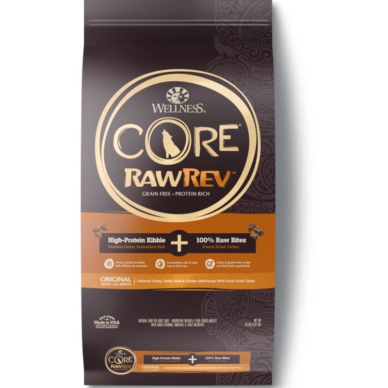 At their core, your dog instinctively craves raw animal protein. Thats why our revolutionary CORE RawRev recipes gives your dog the pure protein, natural enzymes and full flavor they need to thrive. We thoughtfully prepare our CORE RawRev kibble and freeze