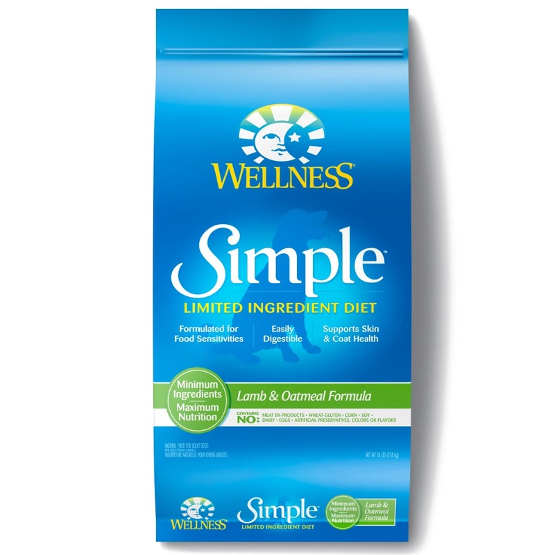 Wellness Simple Natural Limited Ingredient Diet Lamb and Oatmeal Recipe Dry Dog Food is an easily digestible recipe with probiotics and prebiotics. Wellness Simple limited-ingredient diet dog food recipes keep it simple using only a single source of protei