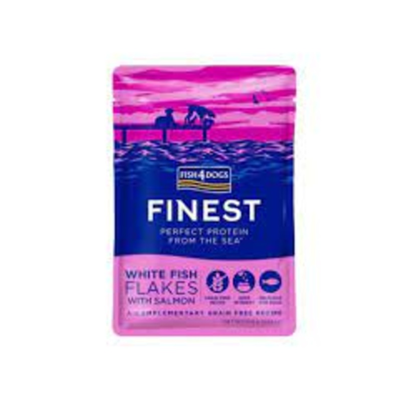 Product DescriptionNEW Fish Flakes recipes are complementary foods, made using a combination of two tasty fish served in a broth. Designed to be deliciously appetising, to add flavour, moisture and interest to dry dog food.CompositionWhite Fish (50%), Salm