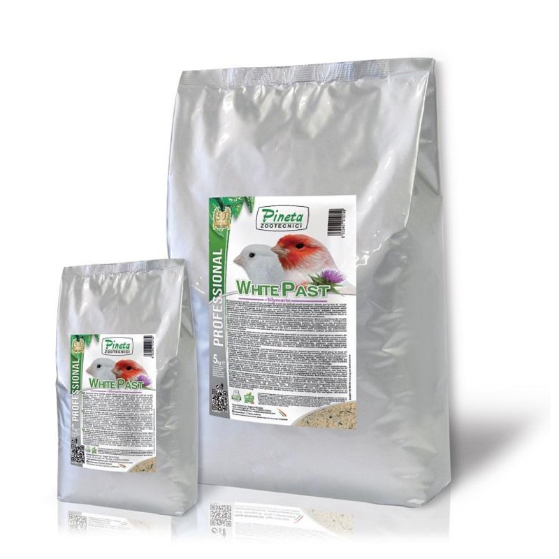 White Past + Silimarina (Pineta Zootecnici) is a high-quality bird breeding food formulated to support a healthy bird diet. This soft, white paste is free of carotenoids, ensuring it does not alter the natural color of plumage. With a balanced mix of essen