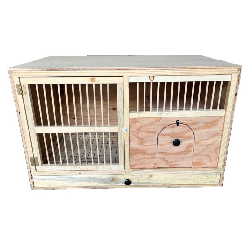 Wood pigeon breeding box with nest bowl platform, drop through bottom, dropping pan and door.OutsideDimensions32" Wide x 19.5" Deep x 20" High