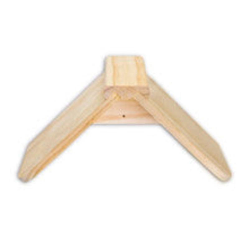Wooden Saddle Perch: Made of quality wood; 3/8in thick solid wood construction Measures: 10in width across at bottom. 5in in height.
