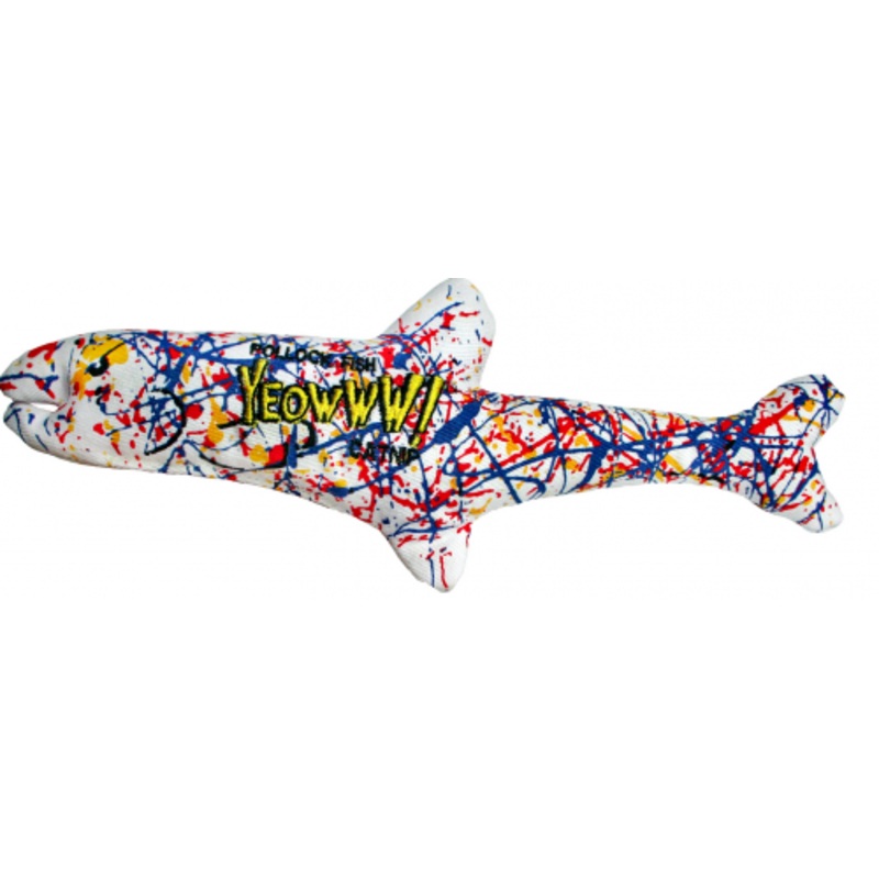 "Yeowww! Pollock Fish Catnip Cat ToyOur signature pollock fish stuffed to the GILLS with YEOWWW! Organically grown catnip! Perfect for nibbling and bunnykicking."Ingredients100% Organically grown Catnip