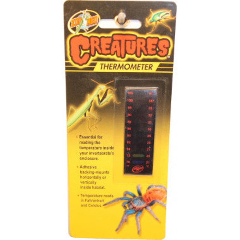 Quickly monitor your pet?s habitat temperatures with this easy-to-apply adhesive thermometer for glass tanks. Keep your pet healthy with healthy temperatures!Zoomed Creatures Thermometer